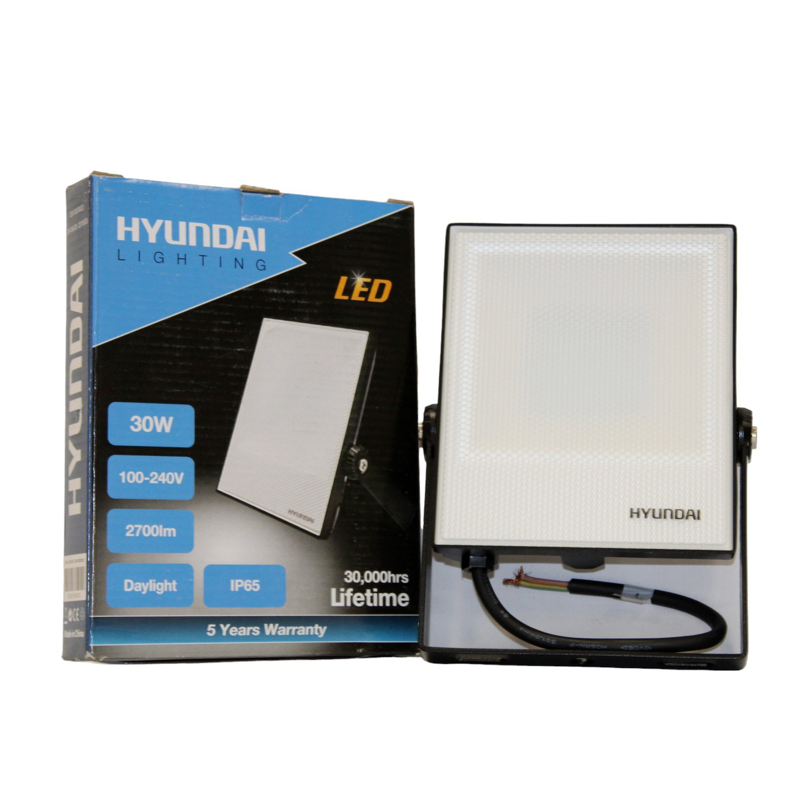 كشاف إنارة ليد من هيونداي بقوة 30 واط يوفر إضاءة عالية الكفاءة بتدفق ضوئي يصل إلى 2700 لومن. يعمل بجهد تشغيل من 100-240 فولت وتردد 50/60 هرتز، مما يجعله م…